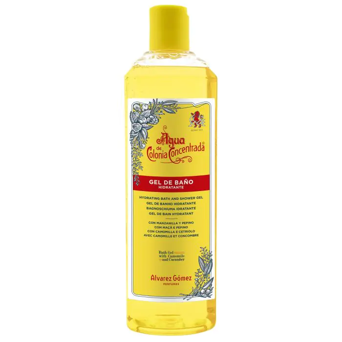 El Gel de Baño Hidratante de Álvarez Gómez es ideal para el cuidado del cuerpo y cabello, enriquecido con extractos vegetales de Manzanilla y Pepino. Indicado para toda la familia, esta fragancia icónica española combina esencias naturales de origen mediterráneo, como limón, lavanda, geranio y eucalipto, junto con aceites esenciales de romero y bergamota.
