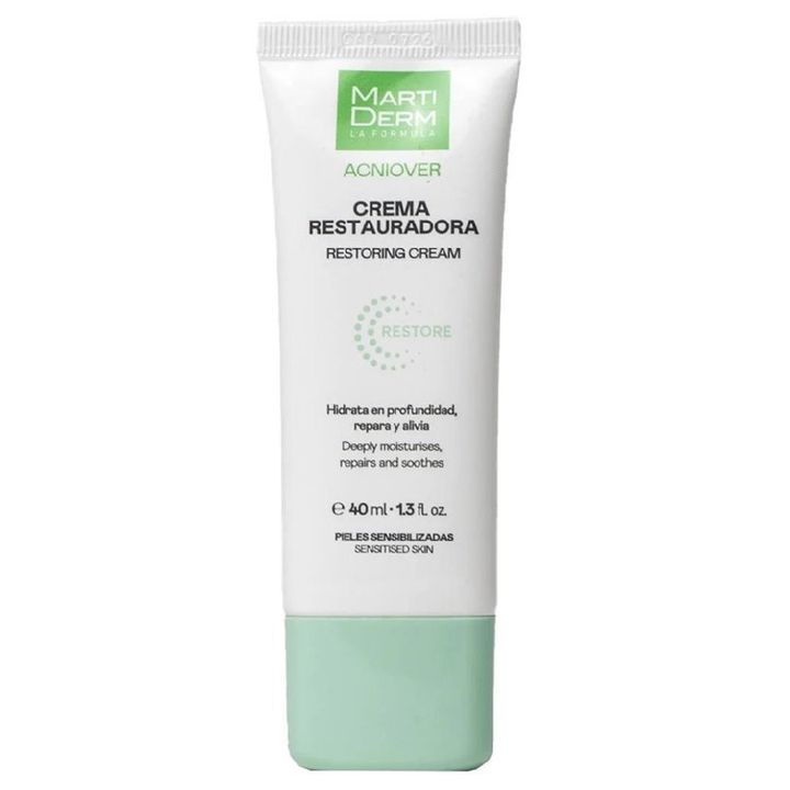 La crema reparadora de Acniover Restore hidrata en profundidad, repara y alivia las pieles sensibilizadas por tratamientos desecantes. Posee activos que ayudan a recuperar la función barrera de la piel y a restaurar el confort y bienestar de la misma.