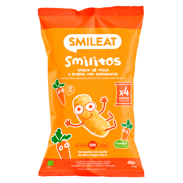 Los SMILITOS DE MAÍZ Y AVENA CON ZANAHORIA son un delicioso y nutritivo snack elaborado a base de ingredientes naturales, especialmente formulado para proporcionar una opción saludable y sabrosa. Este producto combina el sabor del maíz y la avena con los beneficios de la zanahoria, ofreciendo una alternativa ideal para aquellas personas que buscan cuidar su alimentación sin renunciar al placer de disfrutar un buen aperitivo. Cada bolsa de 12 g proporciona una mezcla equilibrada de nutrientes, perfecta para cualquier momento del día.
