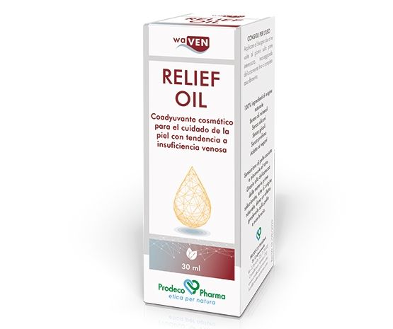 Waven relief oil tiene una formulación a base de aceites y de extractos vegetales especialmente estudiada como coadyuvante cosmético en el cuidado de la piel con tendencia a insuficiencia venosa, protegiendo la piel y evitando la sequedad cutánea. Los extractos de Centella y Rusco estimulan la microcirculación sanguínea. El aceite de Cáñamo, en sinergia con el extracto de Lúpulo y de Árnica, proporcionan una inmediata sensación de alivio en las zonas aplicadas. Los aceites de Lentisco y de Tamanu tienen una marcada acción antioxidante y, en asociación al aceite esencial de Mirto, desempeñan una acción lenitiva.